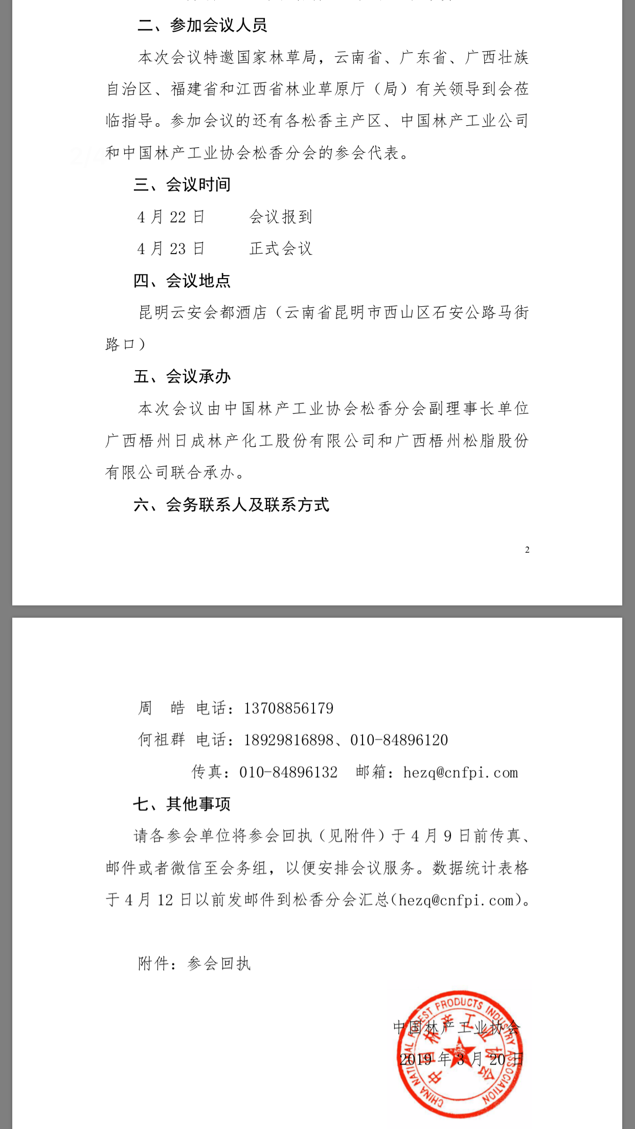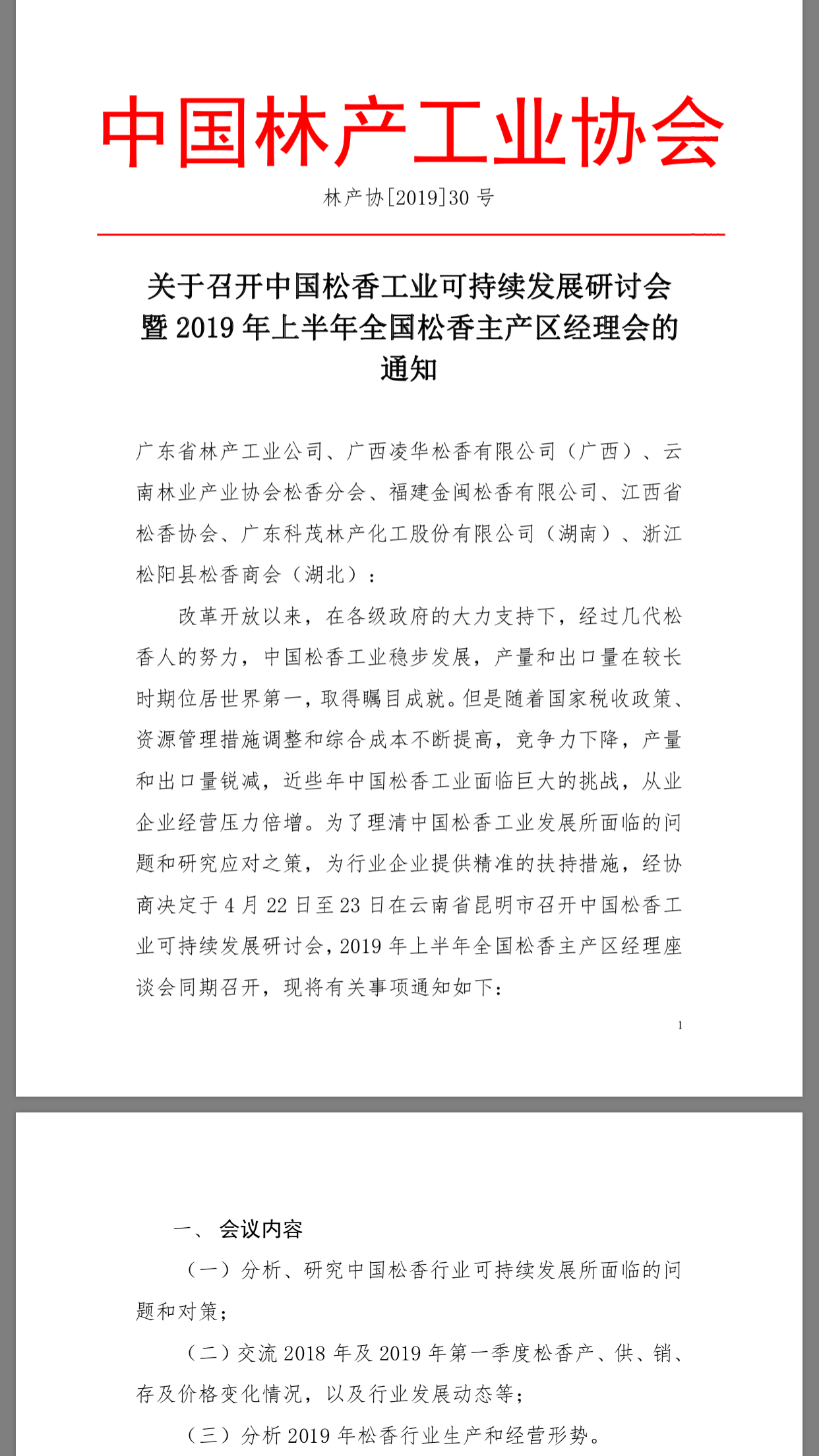 關(guān)于召開(kāi) 2019 年上半年全國(guó)松香主產(chǎn)區(qū)經(jīng)理會(huì)的通知