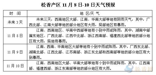華訊松香網(wǎng)溫馨提醒:未來三日,冷空氣繼續(xù)影響我國(guó),另西南地區(qū)大部、江南、華南大部等地有陰雨天氣,其中,西南地區(qū)大部、桂北、贛中北、閩西北等地有小到中雨或大雨,局部地區(qū)有暴雨。受降溫降雨天氣影響,多數(shù)產(chǎn)區(qū)松脂采收運(yùn)輸工作或有所滯緩,松脂量放大可能性不大。