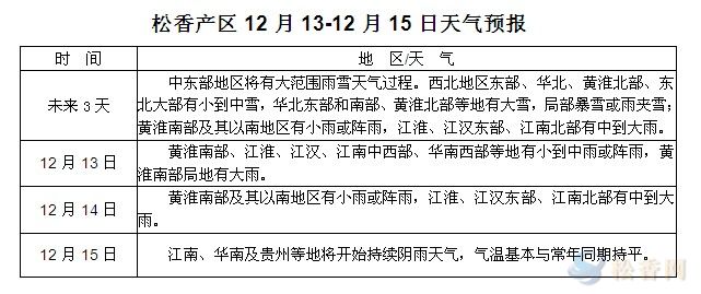 松香產區(qū)12月13日-15日天氣預報