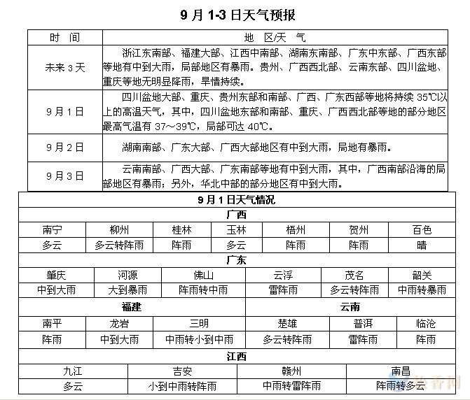 松香產(chǎn)區(qū)9月1-3日天氣預報