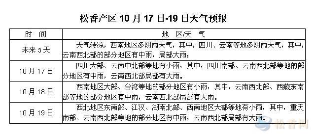 華訊松香網(wǎng)提醒:未來三天兩廣、江西福建等松香主產(chǎn)區(qū)秋高氣爽,除了晝夜溫差較大之外,天氣情況較好。值得關(guān)注的是西南地區(qū)多陰雨天氣,屆時云南、四川等地降水持續(xù),尤其云南多地受雨水天氣影響,松脂量或?qū)⒉粫罅酷尫?,但是否對會在松香市場整體走勢有所影響,有待觀察。