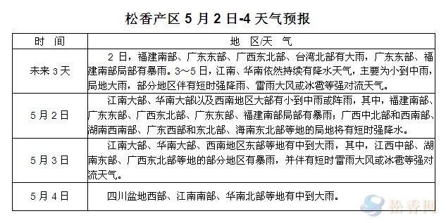 華訊松香網(wǎng)提醒:未來三天,江南華南地區(qū)的降水將進一步減弱,粵桂閩局部大到暴雨。另各產(chǎn)區(qū)陸續(xù)進入夏季,日間氣溫較高,請上山人員注意晝夜溫差。