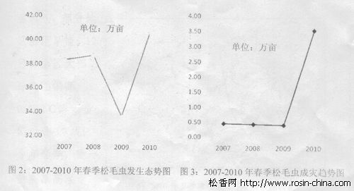 截止3月中旬,廣西馬尾松毛蟲(含松茸毒蛾)發(fā)生面積為40.60萬畝,同比上升101%,其中輕度發(fā)生面積23.47萬畝,中度13.82萬畝,重度3.53萬畝,嚴(yán)重危害面積是去年同期的7.6倍。主要發(fā)生區(qū)域?yàn)閺V西中部、南部和西南部市縣,如南寧、河池、百色、崇左等。松樹嚴(yán)重受害后,木材生長量減少,松脂減產(chǎn)絕收,局部出現(xiàn)單株或成片松樹枯死,林業(yè)整體生態(tài)功能衰退,經(jīng)濟(jì)與生態(tài)功能價(jià)值損失巨大。