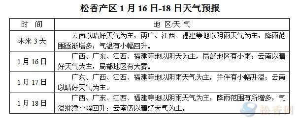 松香產(chǎn)區(qū)1月16日-18日天氣預(yù)報(bào)