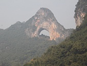 8日早上8:30,大伙向最后一個景點出發(fā)——月亮山景區(qū)的大榕樹,這也是桂林陽朔的一個著名景點。大巴士開進景區(qū)停車場剛停穩(wěn),大伙就魚貫而出直奔目的地,進入景區(qū)大門口,只見一棵千年古榕遮天蔽日,樹圍大約七米多,高近二十米,枝繁葉茂,盤根錯節(jié),氣根如老人胡須在風中飄拂,樹干有的貼地而生,有的斜出如飛龍破霧。大榕樹下的另一側是金寶河,河水緩緩流淌,明凈如鏡,一排竹筏停靠河邊;金寶河對岸有一小山,山中空如一座石門,叫穿巖;巖頂左側石壁上有一石,如鉤;洞口臨水一石,如蛙;在此設有劉三...
