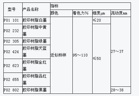 型號(hào)產(chǎn)品名稱固著速度mim結(jié)膜干燥h流動(dòng)值mm粘性P01101膠印樹脂白墨-≥1032~4010~16P02232膠印樹脂中黃墨≤408~14P02305膠印樹脂綠墨P02424膠印樹脂天藍(lán)墨33~41P02623膠印樹脂金紅墨P02655膠印樹脂品紅墨P02802膠印樹脂黑墨≤5034~425、試驗(yàn)方法