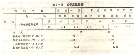 松香的質(zhì)量按其色澤、軟化點、酸值、不皂化物含量、機械雜志等項目確定等級。我過生產(chǎn)的松香分六級。各級松香質(zhì)量指標如下: