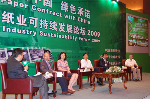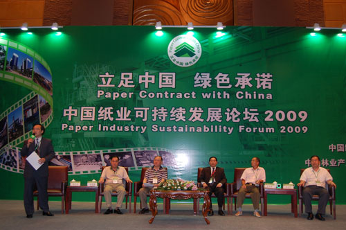 在新中國成立60年之際,中國紙業(yè)也經(jīng)歷了60載春秋的成長與發(fā)展。從建國初期的年產(chǎn)不足百萬噸一躍而成2008年的八千萬噸,從以前依賴進(jìn)口到現(xiàn)在的世界第二大造紙生產(chǎn)國,中國造紙行業(yè)經(jīng)歷了從無到有、點(diǎn)滴積累到奮發(fā)圖強(qiáng)的光榮歷程。然而,在當(dāng)前世界經(jīng)濟(jì)形勢持續(xù)低迷、自然資源緊缺、環(huán)境污染的多重壓力下,中國紙業(yè)如何能突出重圍走出一條有中國特色的可持續(xù)發(fā)展之路,成為了本次論壇交流和討論的焦點(diǎn)。另外,論壇以中國紙業(yè)可持續(xù)發(fā)展為切入點(diǎn),通過全體大會和對話的形式,分別從宏觀經(jīng)濟(jì)、行業(yè)政策發(fā)展及環(huán)境保護(hù)等角度就造紙業(yè)是否能夠做到環(huán)境友好和人工林是林紙循環(huán)的關(guān)鍵環(huán)節(jié)等話題進(jìn)行開放性討論。