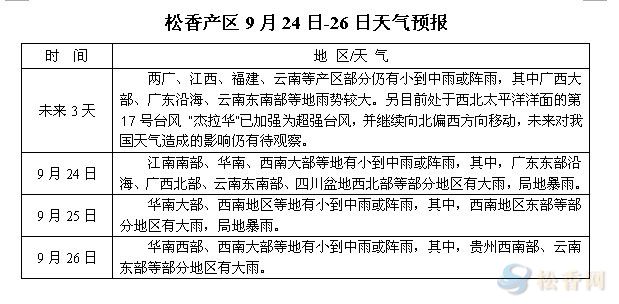 松香產(chǎn)區(qū)9月24日-26日天氣預(yù)報(bào)