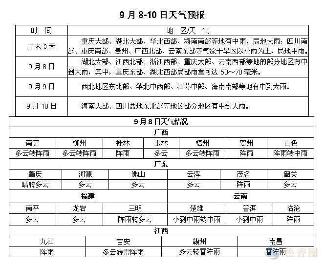 松香產(chǎn)區(qū)9月8-10日天氣預報