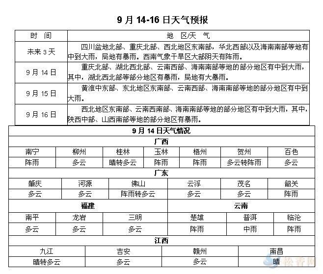 松香產(chǎn)區(qū)9月14-16日天氣預(yù)報