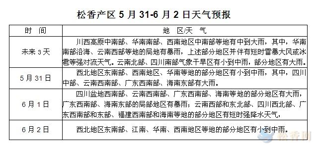 松香產(chǎn)區(qū)5月31日-6月2日天氣預(yù)報(bào)