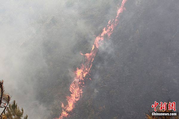 圖為,順山勢蔓延的一條火線。